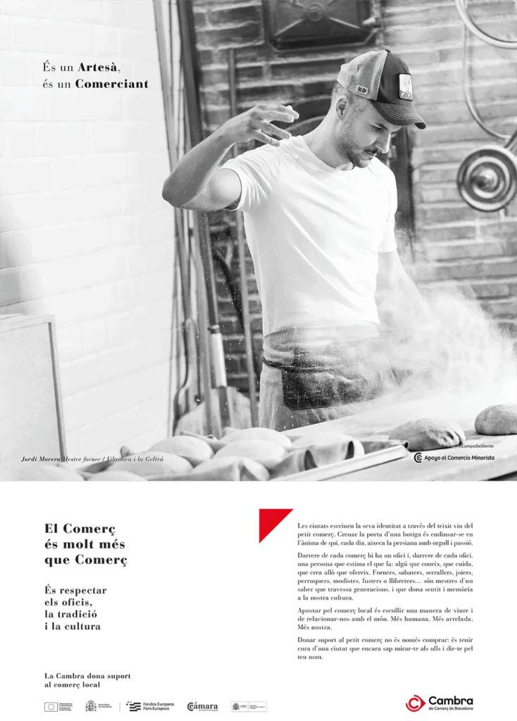 La campanya mostra la força del comerç de proximitat a través de comerciants i artesans de diferents ciutats: Barcelona, Badalona, Castelldefels, El Prat de Llobregat, Granollers, Vic i Vilanova i la Geltrú. Territoris protagonistes d’un relat visual que posa en valor les persones que fan possible aquest ofici i les seves històries.