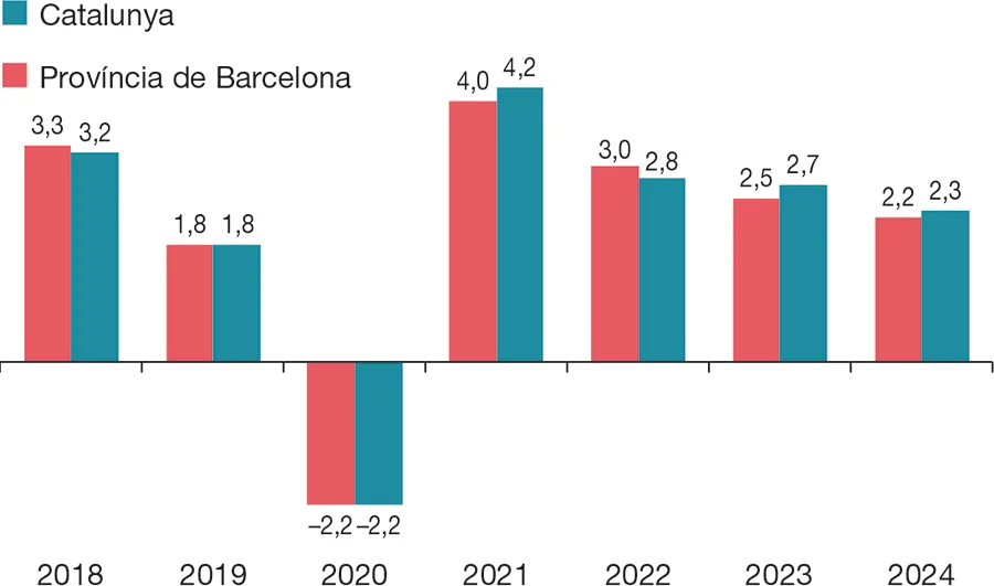 Fuente: Programa Hermes basado en datos de Idescat y del Observatorio del Trabajo y Modelo Productivo de la Generalidad de Cataluña